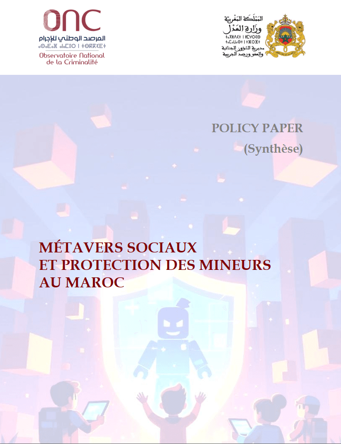 Synthèse d'un Policy Paper de l'ONC (Observatoire National de la Criminalité) sur les risques des métavers sociaux pour les mineurs au Maroc et les mesures de protection à adopter.